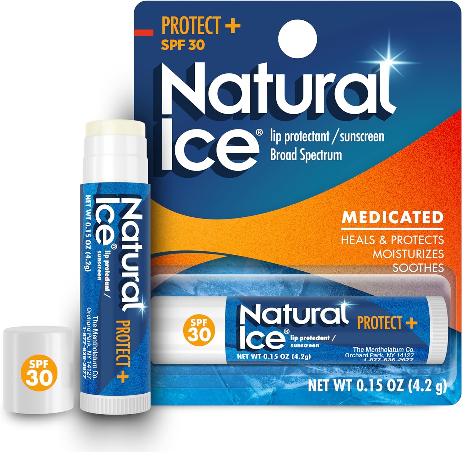 - Twelve 4.2 g lip balm tubes of Mentholatum Natural Ice Sport Broad Spectrum SPF 30 Medicated Lip Balm