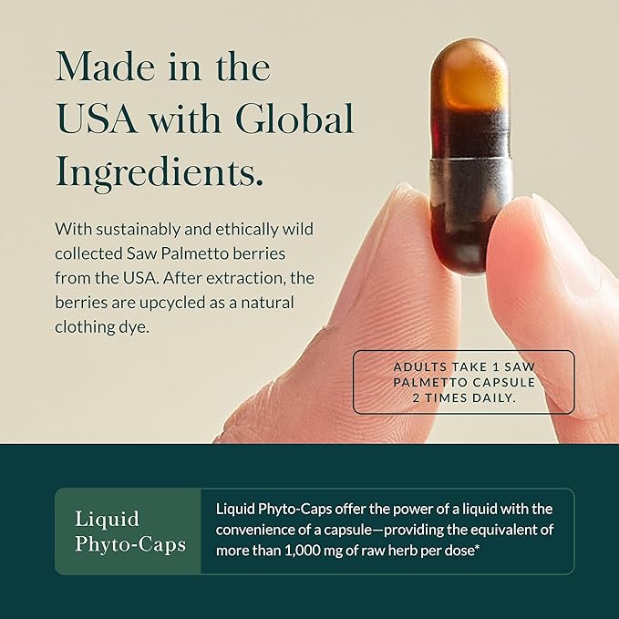 Gaia Herbs Saw Palmetto - Supports Healthy Prostate Function for Men - Contains Saw Palmetto and Sunflower Seed Lecithin to Support Men’s Health - 60 Vegan Liquid Phyto-Capsules (30-Day Supply)