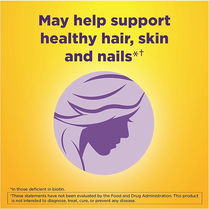 - May help support healthy hair, skin and nails in adults deficient in biotin, as diagnosed by their physician using appropriate biomarkers.