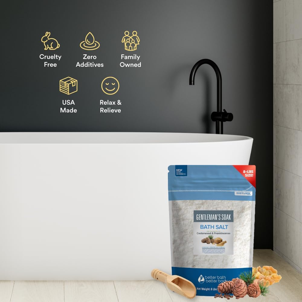 Gentleman's Bath Salt 128 Ounces Epsom Salt with Natural Cedarwood, Frankincense, Eucalyptus and Peppermint Essential Oils Plus Vitamin C in BPA Free Pouch with Easy Press-Lock Seal