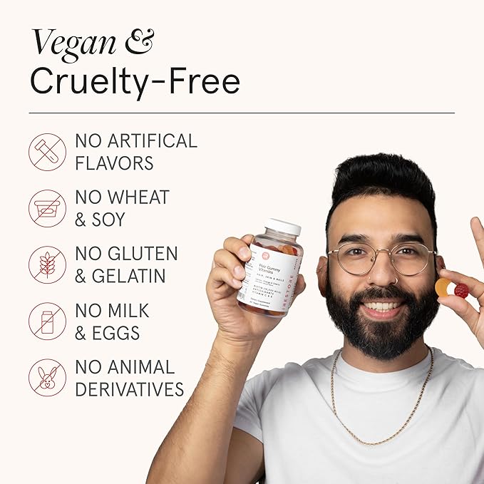 - All Of The Good, None Of The Bad: There are no preservatives, gluten, or animal products used in these hair vitamins gummies. We're proud to be vegan & cruelty-free, and naturally colored & flavored with 100% plant-based ingredients (different from other brands.)
