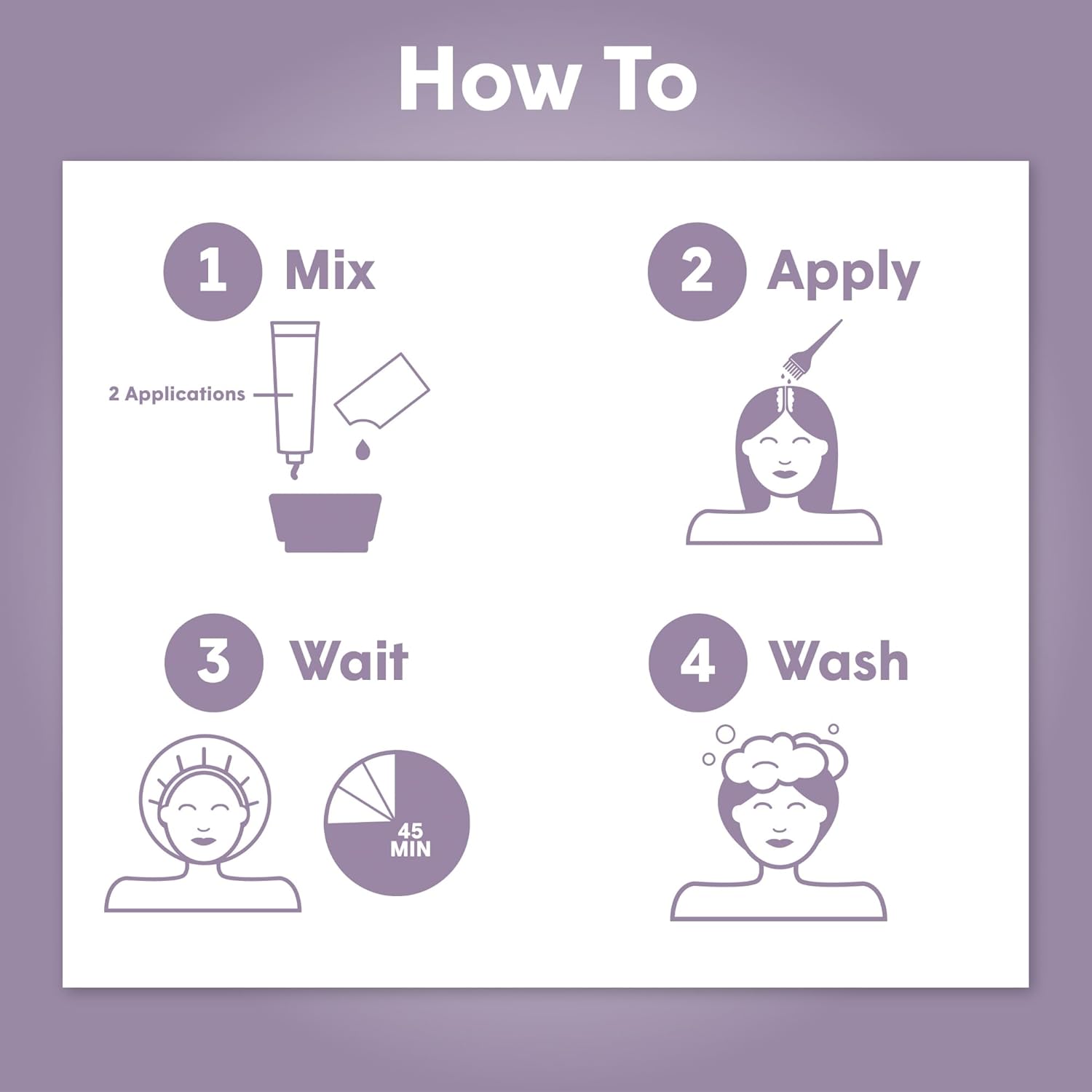 - WHAT’S INCLUDED - Everything you need for two applications: permanent hair color, developer color activator, mixing bowl (2), gloves (2), processing cap (2), hair color applicator brush, and Color Fresh Shampoo & Conditioner samples.