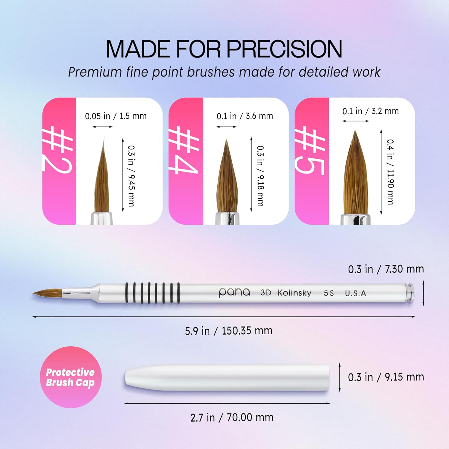 - [Measurements] Brush Tip: 0.4 inches (11.90 mm) X 0.1 inches (3.2 mm) | Cap: 2.7 inches (70.00 mm) x 0.3 inches (9.15 mm) | Overall length: 5.9 inches (150.35 mm)