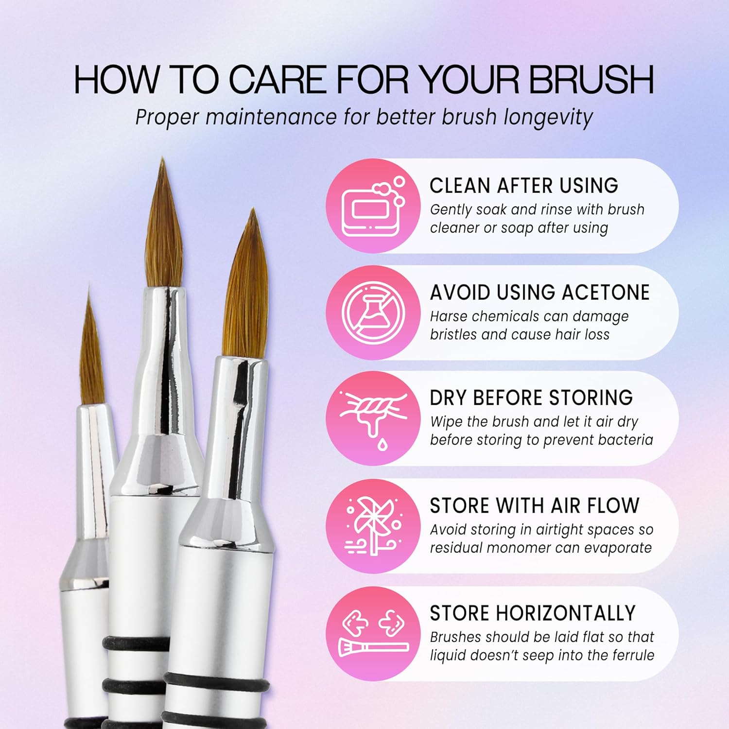 - [Material] Crafted with a strong metal handle, cap, and soft 100% Kolinsky bristles, this brush is lightweight, wear-resistant, and easy-to-clean, for reliable and long-lasting performance.