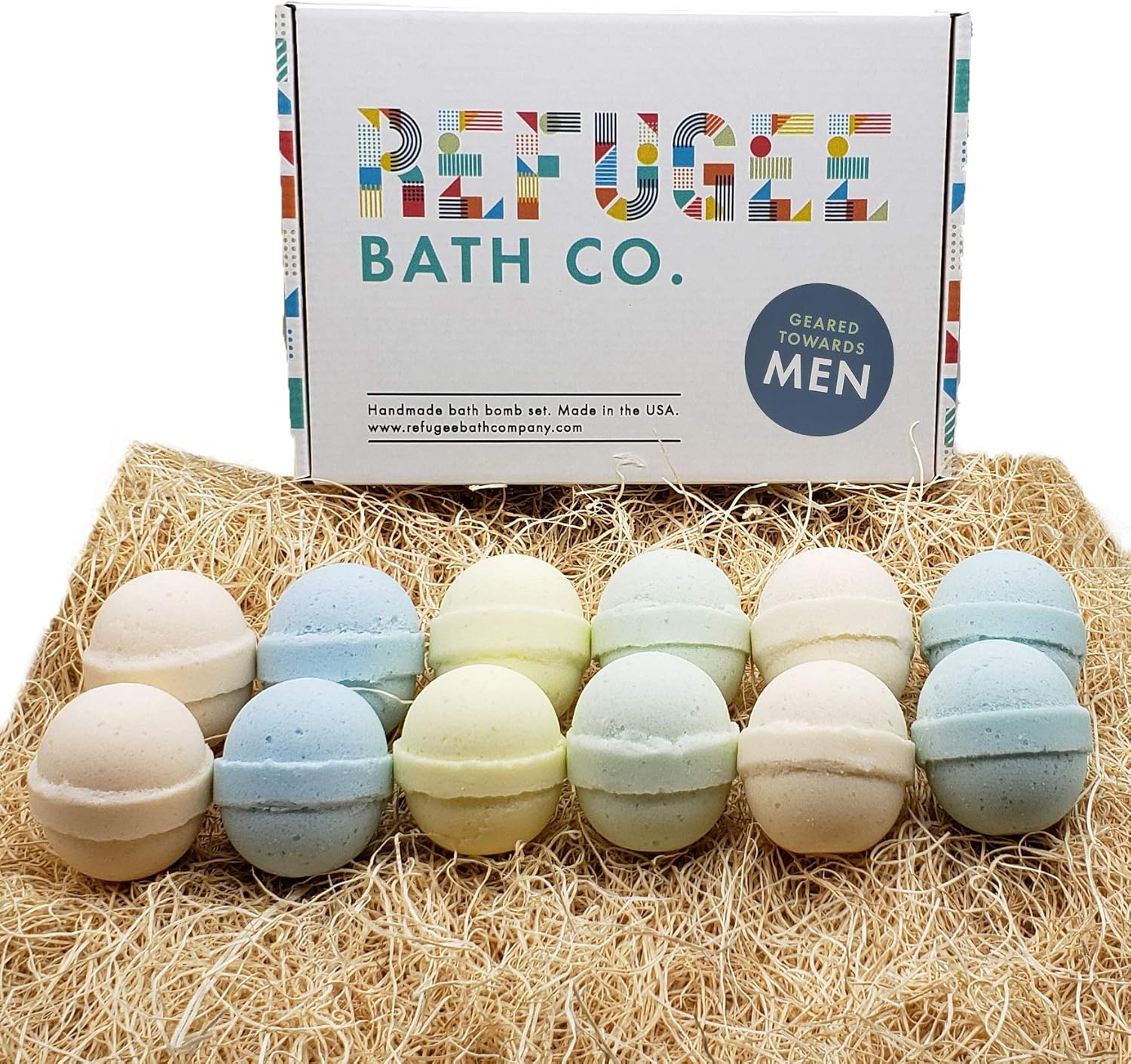 Mens Variety Bath Bombs, 2.5 oz Each, Cocoa Butter and Plant Based Ingredients, Vegan, Support Refugee Employment in The USA, Made in The USA