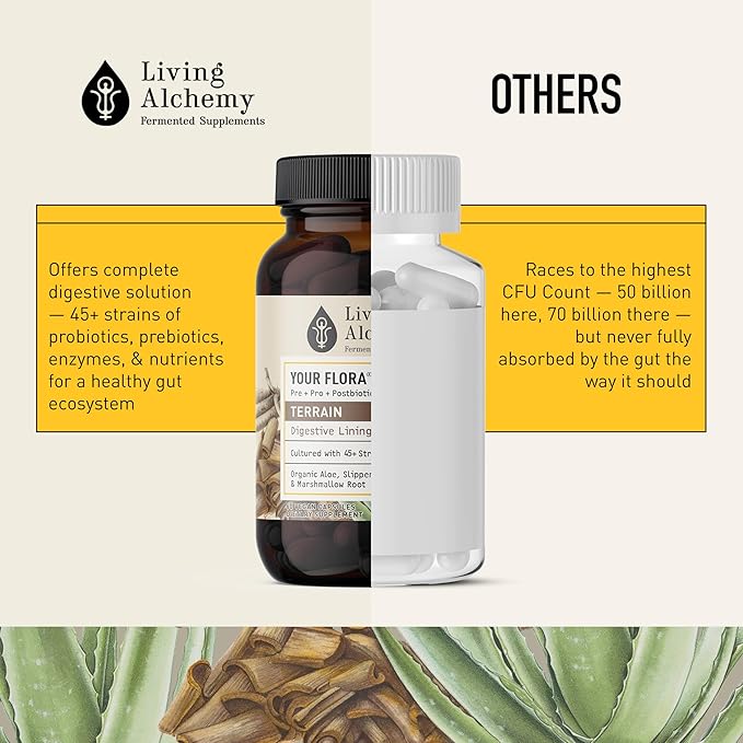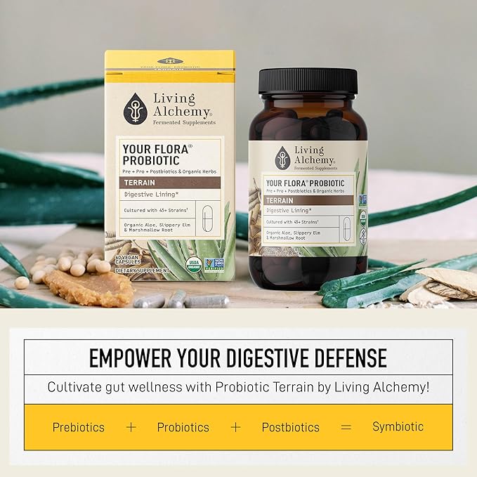 Gut Health Supplements - Your Flora Probiotic Terrain with Fermented Soybean, Aloe Vera, Prebiotics, Digestive Enzyme, Probiotic for Women & Men- Vegan, Non-GMO - Living Alchemy, 60 Pcs