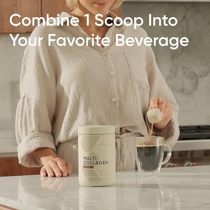 - EASY TO USE: Meet your new morning ritual! Dissolving conveniently and easily in hot or cold water, Sports Research Multi Collagen Peptides tastes great and dissolves in coffee, tea, smoothies, soups, and more. Our complex formula is an easy way to supplement collagen type I, II, III, V and X into your daily ritual. Multi Collagen powder for women and men provides support for healthy joints, bones, & nails.