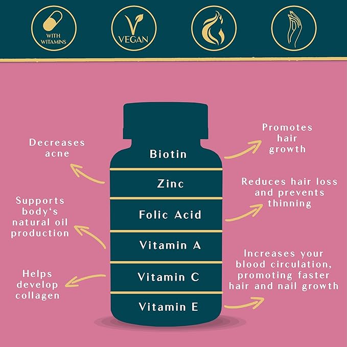 - PACKED WITH VITAMINS - Feel beautiful and support your wellness with the combined mix of Biotin and different vitamins - such as Vitamin A, C, E, B5, B6, B9, - that can help feed your body the vital nutrients your hair, skin and nails need.