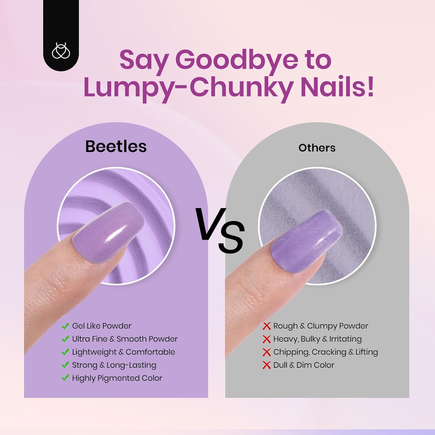 - High Quality Long Lasting: Beetles nail dip powder kit is long lasting, chip resistant and easy to apply, suitable for all kinds of nails. It looks natural, lightweight, and has impeccable shine, keeping the nail art gorgeous and shiny for about 3 weeks or more.