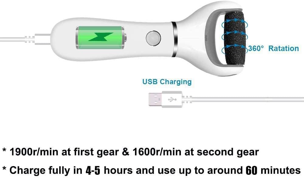- Easy to clean: 2 rollers for soft and hard callus, also easy to replace and clean the roller of foot file. But please don't immense this foot care device into the water or shower itu at any time