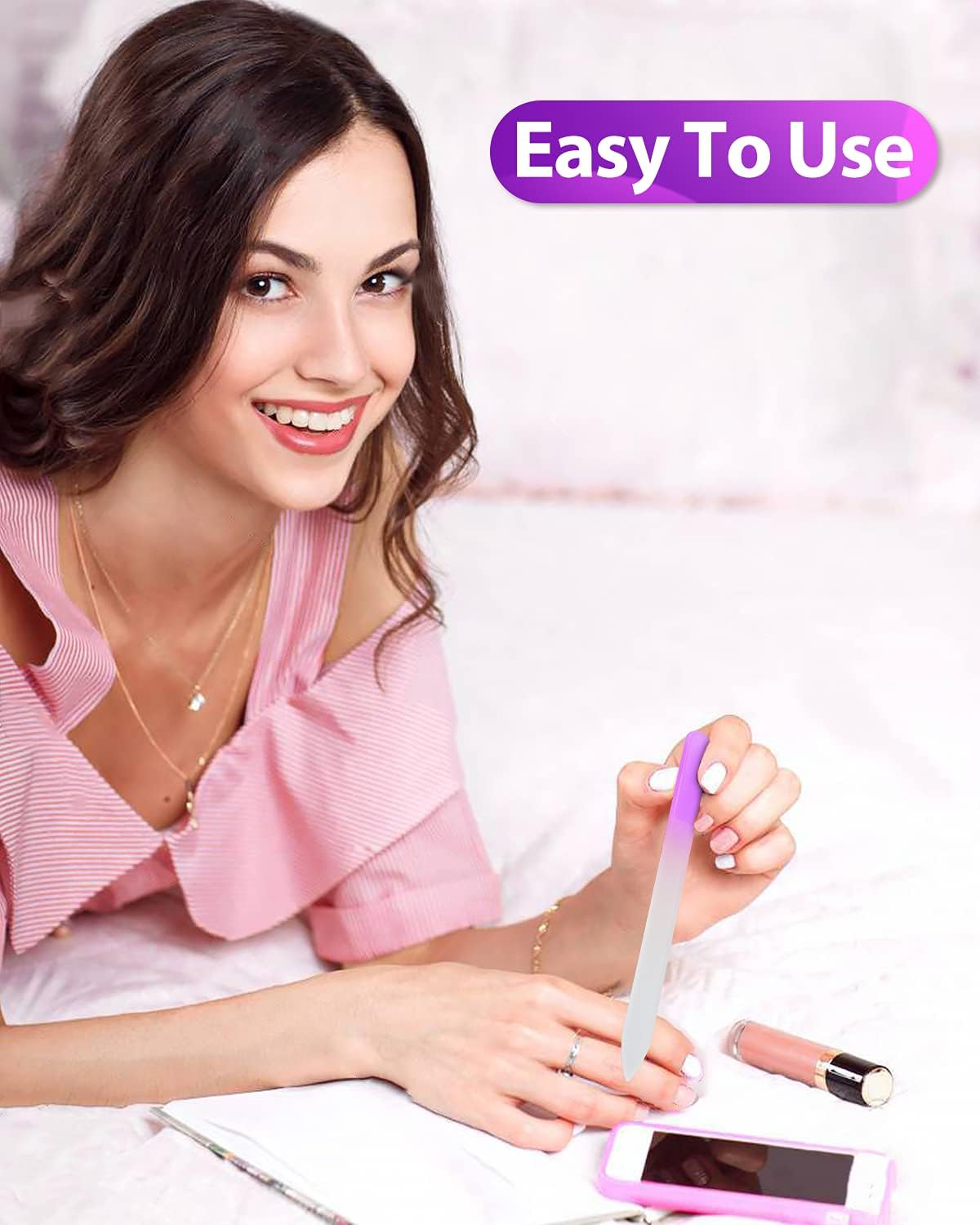 - 【Durable & Effective】: Made of high quality tempered glass, the abrasive filing surface is gentle and effective and never wears out or becomes blunt. Unlike other ordinary nail buffers and files, our glass nail files are gentle on the nails and cuticles, expertly shape nails with comfort, easy & efficiency.