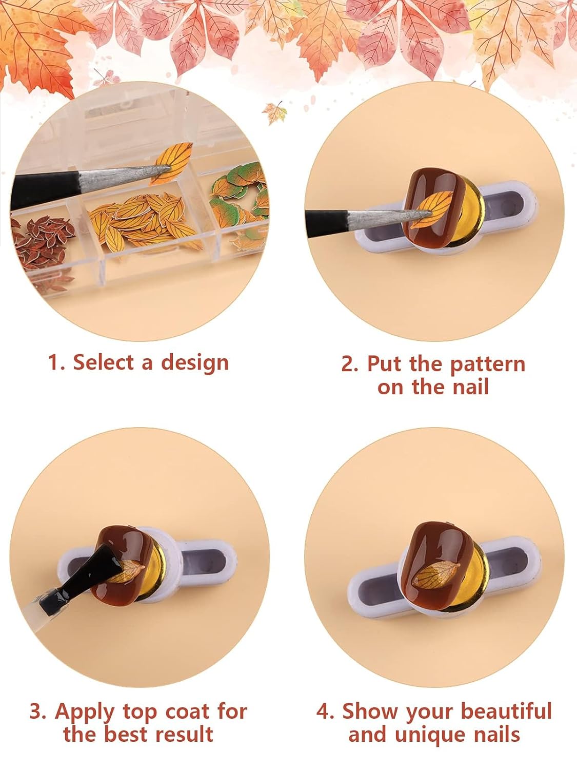 - Multiple Uses: Using these leaves for nail decoration or body beauty is a good choice for fashionistas. In addition, it can also be pasted on mobile phone cases, water bottles, scrapbooks, etc. They are handicraft design supplies.