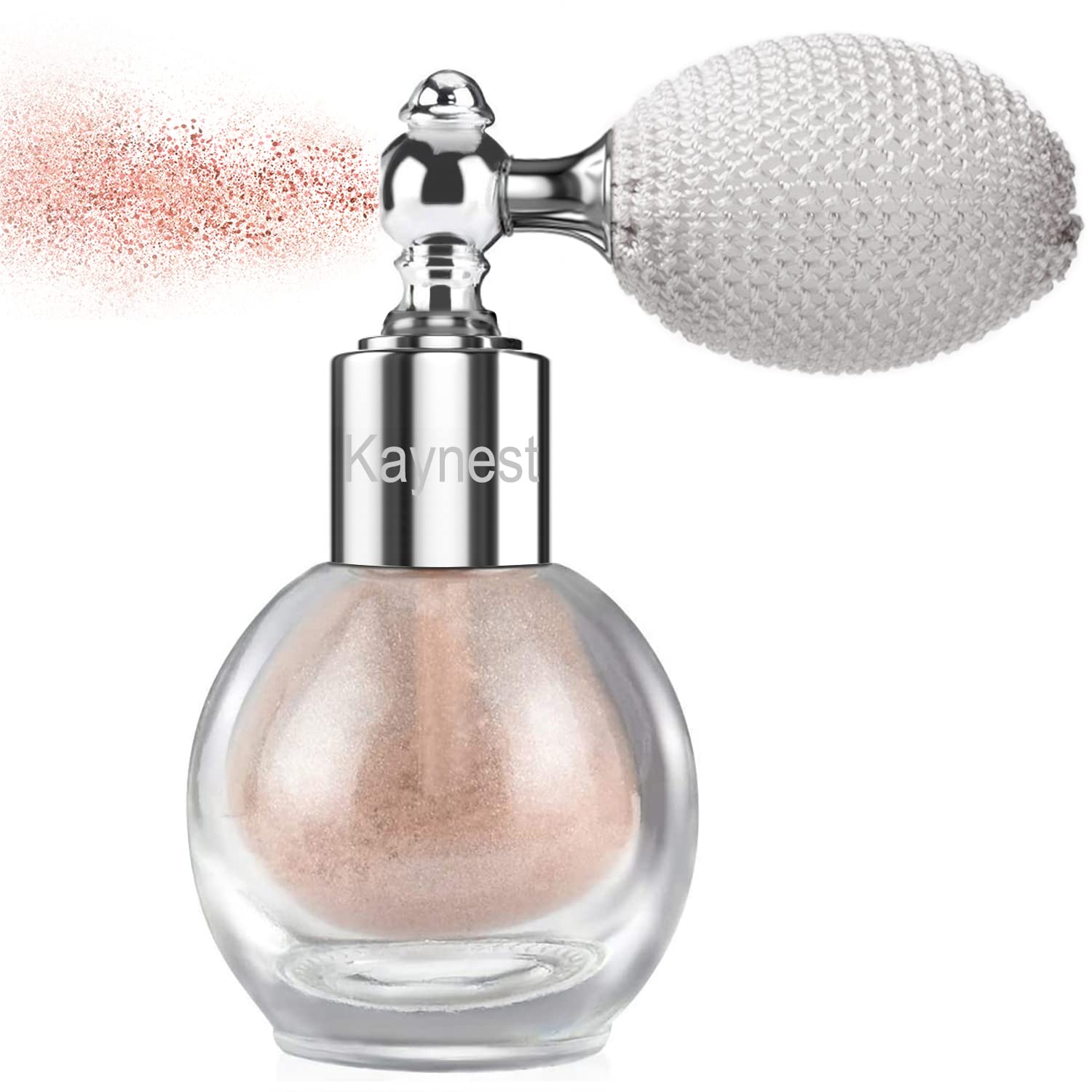 - UNIQUE SPRAY DESIGN : The spray's shape adopt similar to the perfume spray design, the bottle body with a exquisite spray nozzle and a squeezable airbag. You just need to lightly press the airbag, the shiny highlighter powder will be sprayed on your skin, which is so easy to use. The exquisite glitter powder bottle is so compact and lightweight to carry that you can easily make up anytime and anywhere.
