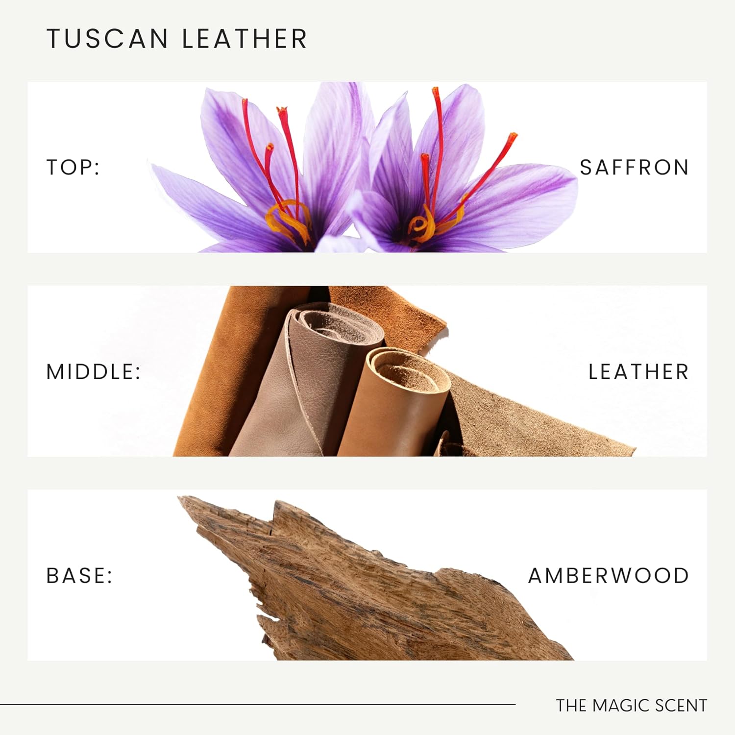 - PREMIUM BLEND OF NATURAL DIFFUSER OIL SCENTS - Tuscan Leather merges the primal essence of fine leather with night-blooming jasmine and black suede. Expertly crafted in Miami, USA.