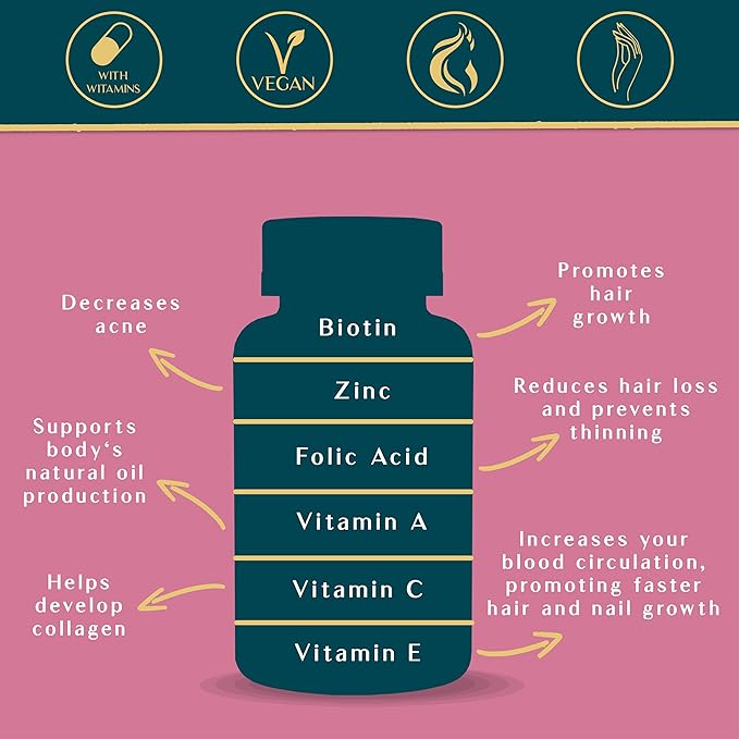 - PACKED WITH VITAMINS - Feel beautiful and support your wellness with the combined mix of Biotin and different vitamins - such as Vitamin A, C, E, B5, B6, B9, - that can help feed your body the vital nutrients your hair, skin and nails need.