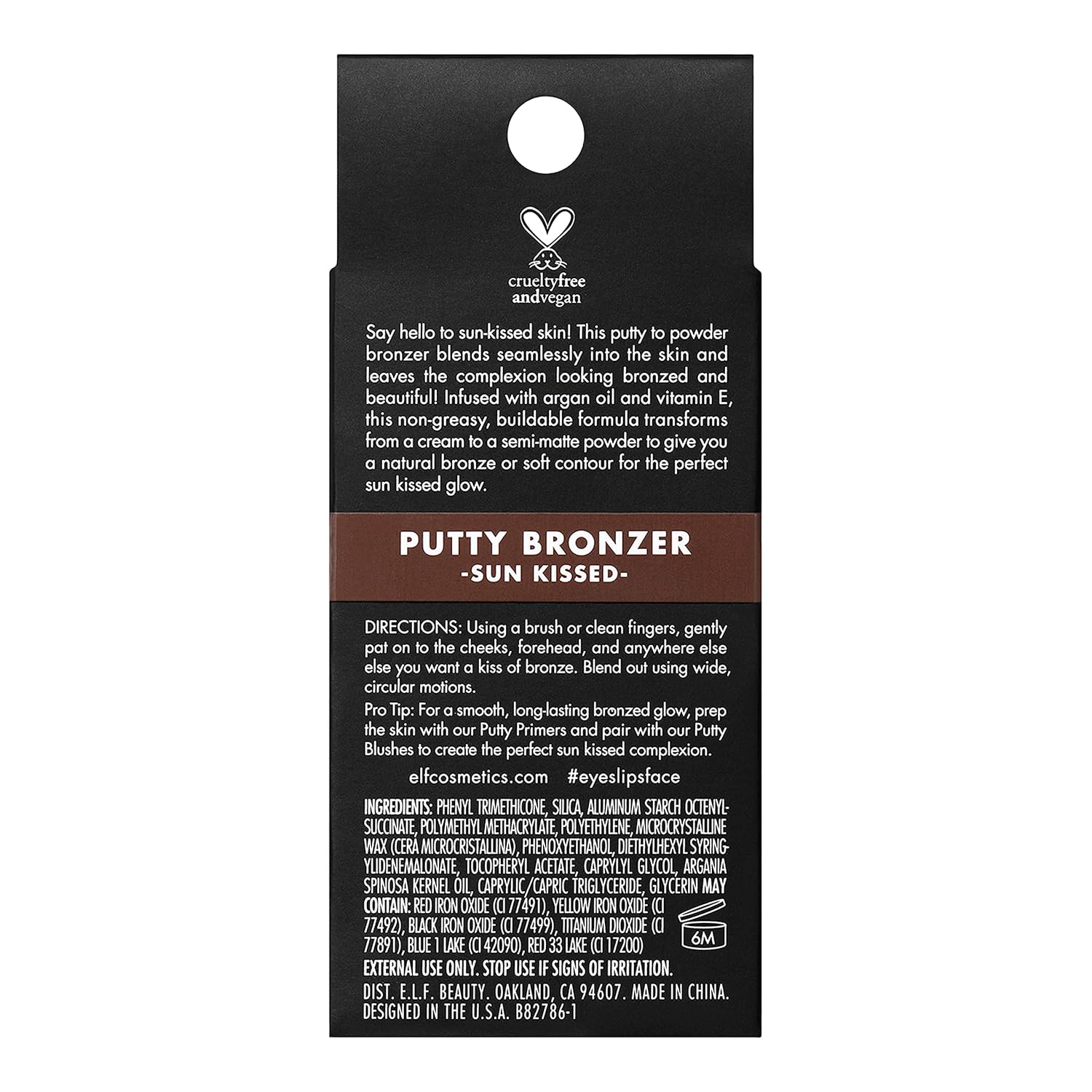 - CREAM-TO-POWDER FINISH: Bask in that sun-kissed, back-from-vacation glow all year round with e.l.f. Putty Bronzer. This unique creamy putty-to-powder bronzer delivers highly pigmented, buildable color, and effortlessly blends and blurs into skin, delivering a natural bronzing effect with a smooth, semi-matte finish.