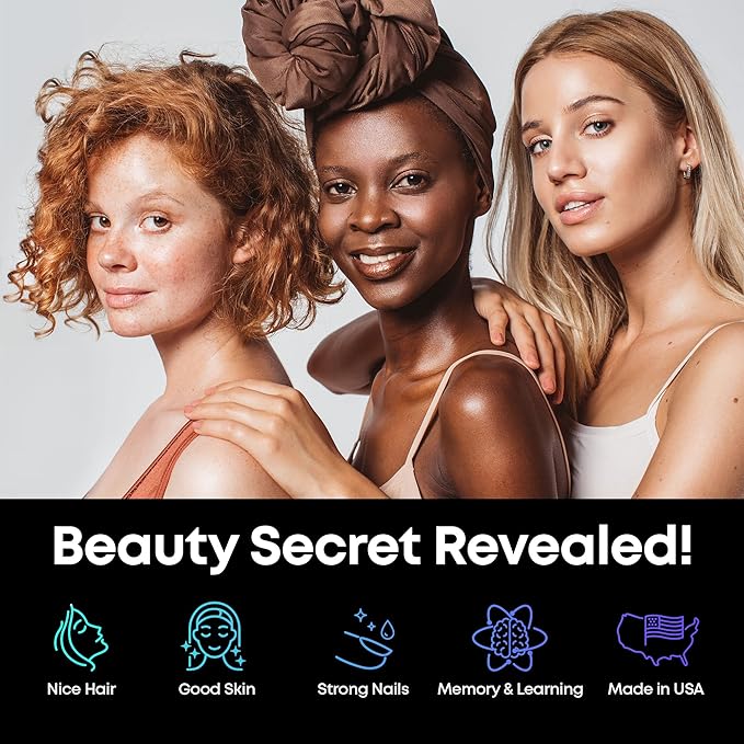 Biotin and Collagen Supplements - Hair Growth Vitamins - Made in USA - Hair and Nails Vitamins for Women - Biotin Vitamins for Hair Skin and Nails - Vitamin B Complex - Hyaluronic Acid - 60 Caps