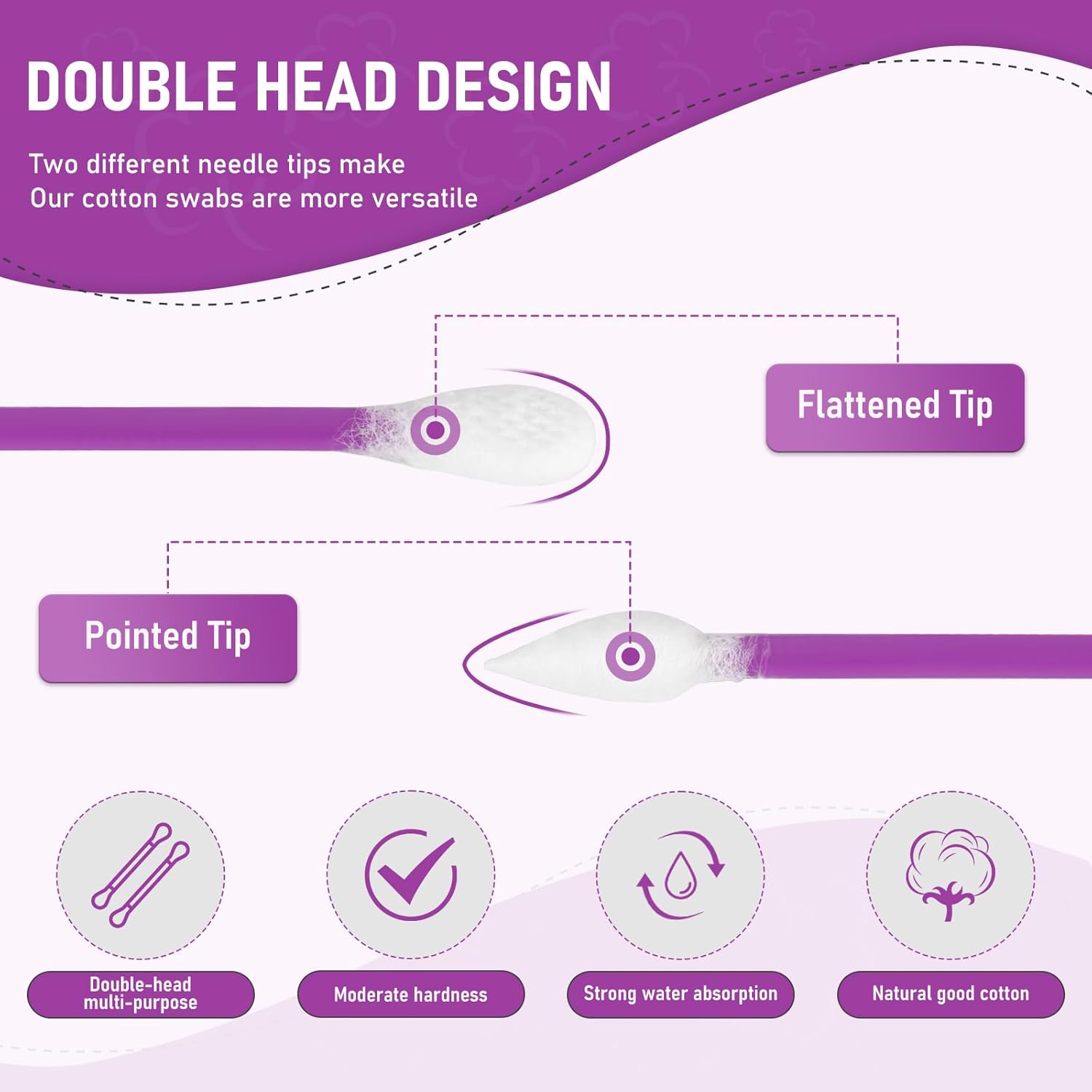 900pcs CGR Precision Cotton Swabs with Pointed and Flattened Tip Cosmetic Makeup Applicator(3x300pcs in bags)