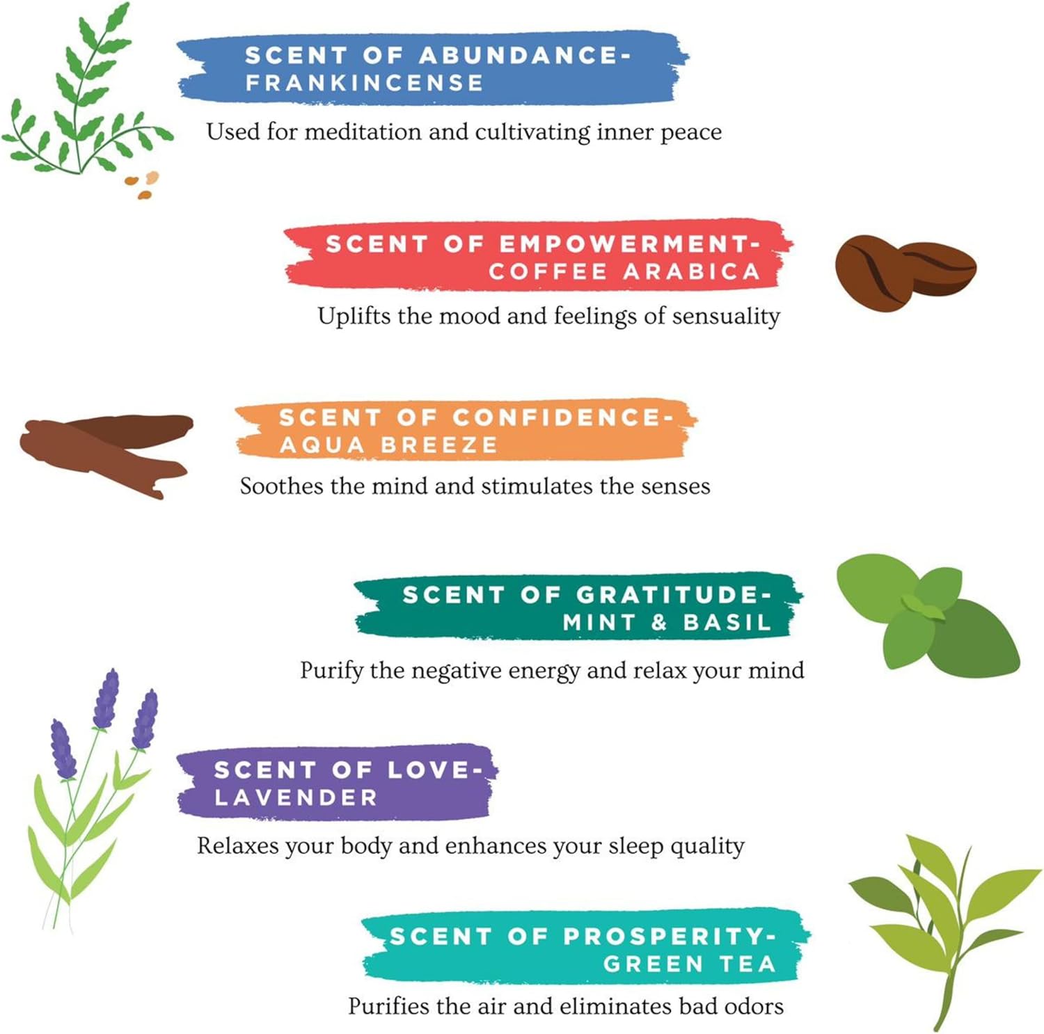 - Fragrance Notes – This incense pack combines uplifting earthy notes with floral undertones with fragrances like Frankincense insense, Coffee inscents, Aqua Breeze, Mint and Basil, Lavender insences, Green Tea Inscents-Sticks. Suitable for meditation rooms, bedrooms, living areas, and even office spaces.