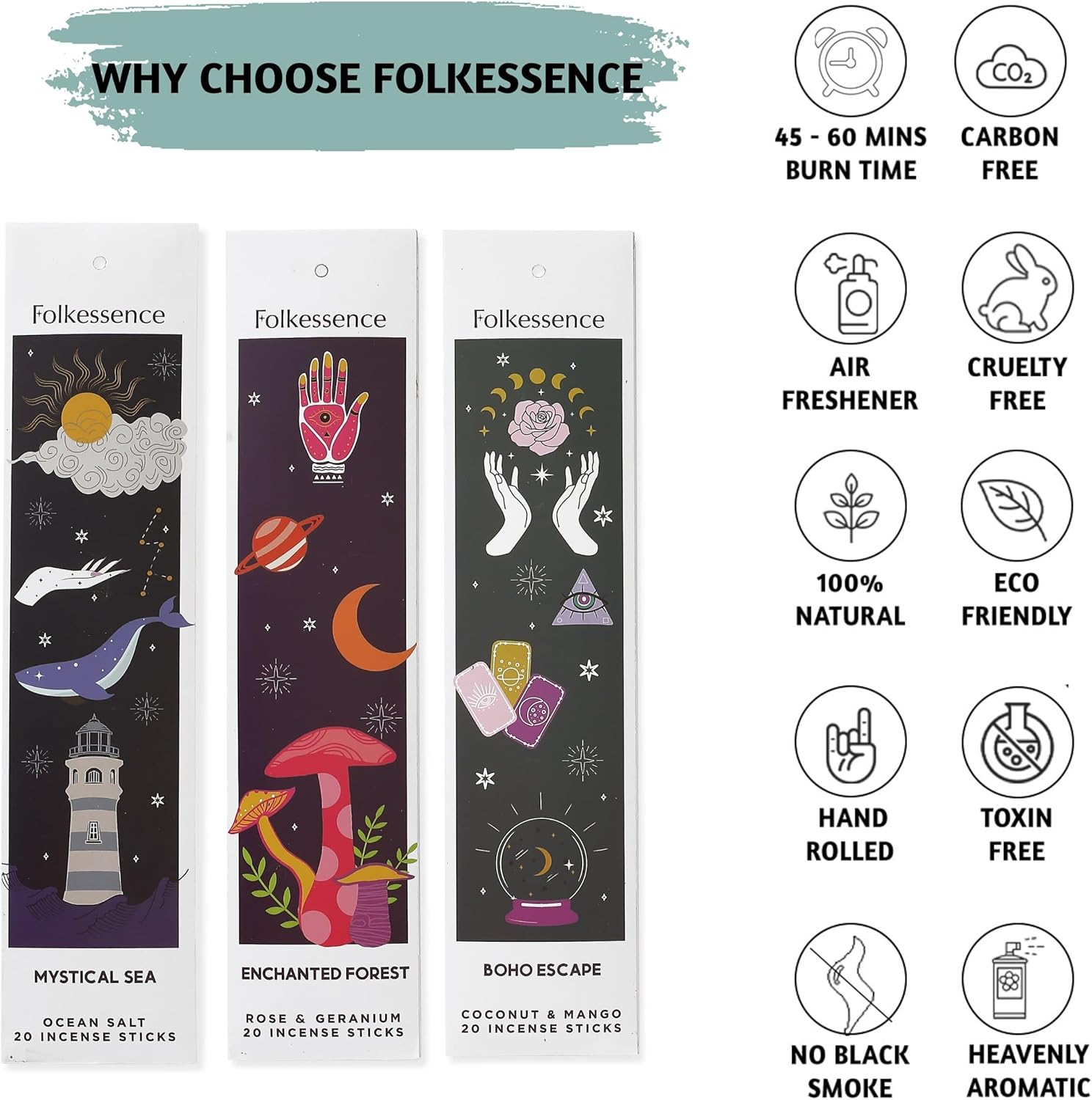 - Folkessence Incense Collection – Folkessence by Folkulture brings you this incense range which pairs beautifully with our incense holders and trays. Complete your aromatherapy set for a unique, spa-like experience at home.