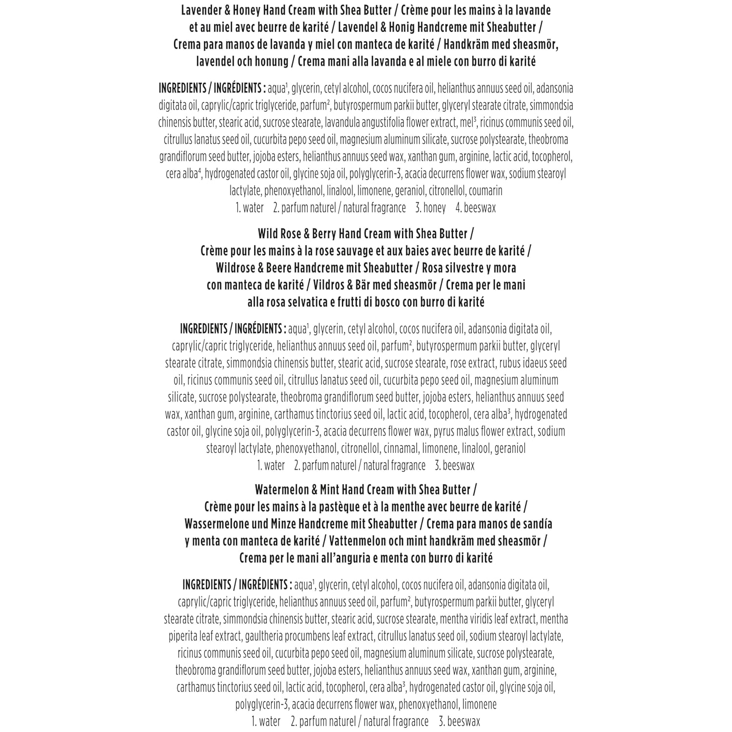 - THREE DELIGHTFUL SCENTS: Hand cream set includes three gorgeous fragrances—Lavender and Honey, Wild Rose and Berry, and Watermelon and Mint—to indulge the sense while softening rough, dry hands