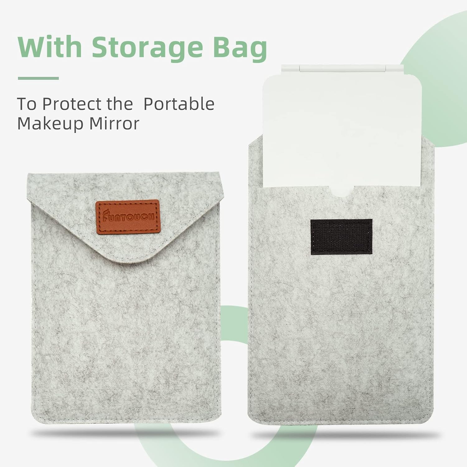 - STORAGE and PROTECTION BAG:This travel makeup mirror came with a modern felt bag can prevent the portable mirror from scratch in the suitcase.It is also very convenient to put it into your handbag,backpack and luggage case,it’s a ideal gift for lover
