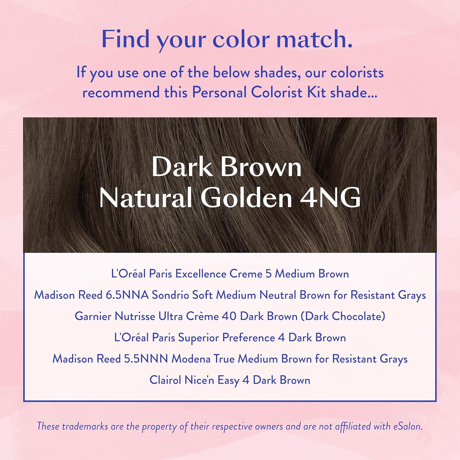 - Your Hair Color, Your Way: Crafted by real-life colorists and inspired by your individuality, eSalon’s hair color and care products are thoughtfully designed to fit your unique needs – not the other way around.
