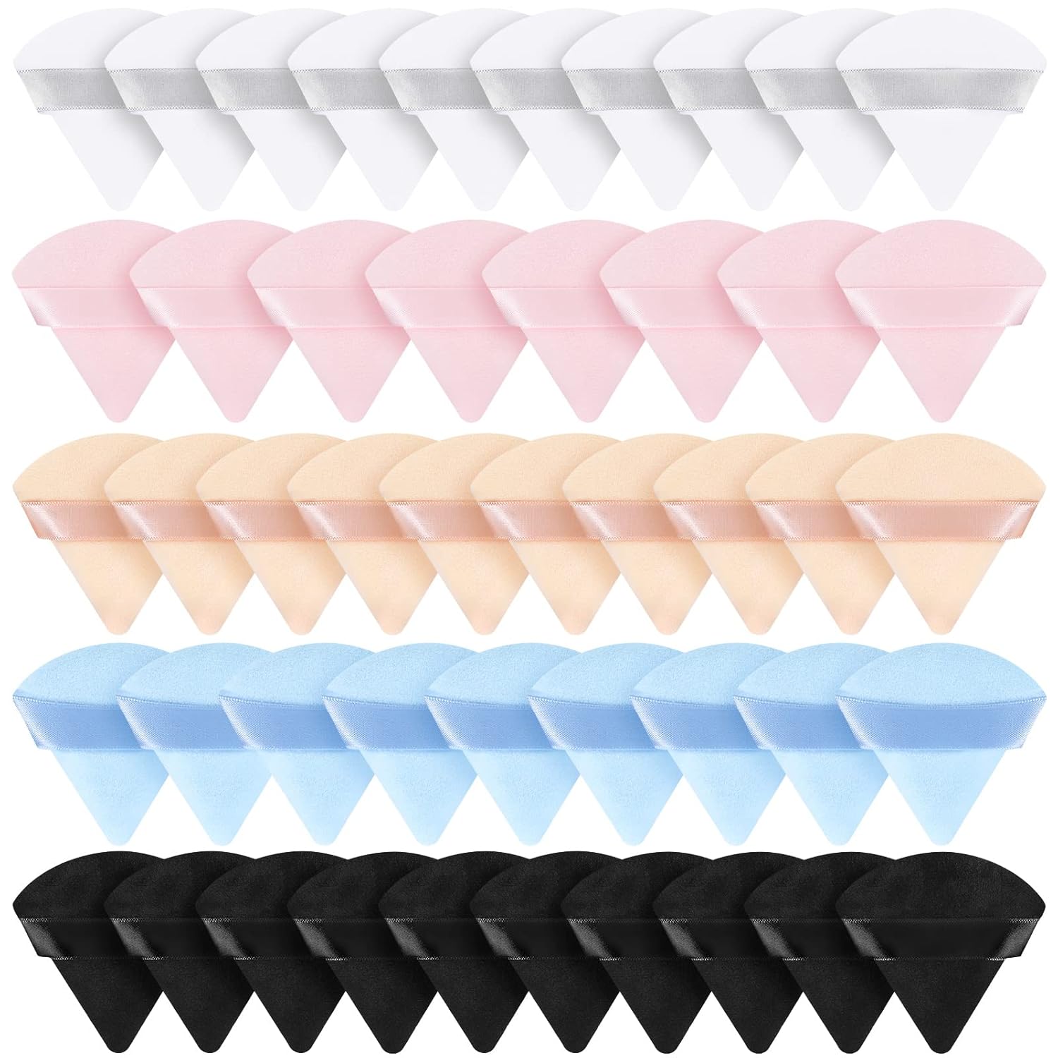 Suclain 48 Pcs Velour Triangle Powder Puff Soft Velour Makeup Puff for Face Powder Makeup Triangle Sponges for Wet and Dry Cosmetic Foundation Loose Mineral Body Makeup Tool(Bright Color)