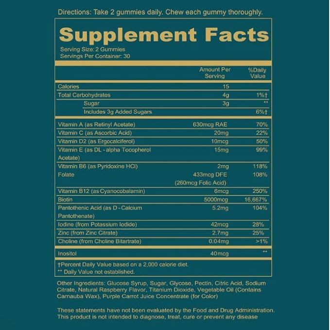 - PACKED WITH VITAMINS - Feel beautiful and support your wellness with the combined mix of Biotin and different vitamins - such as Vitamin A, C, E, B5, B6, B9, - that can help feed your body the vital nutrients your hair, skin and nails need.