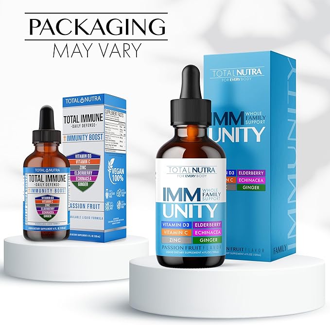 6-in-1 Liquid Multivitamin Supplement | 100% Daily Zinc, Vitamin D3 and Vitamin C Immunity Drops | Elderberry, Echinacea & Ginger Defense Support for Adults & Kids (Passion Fruit, 4oz-4pk)