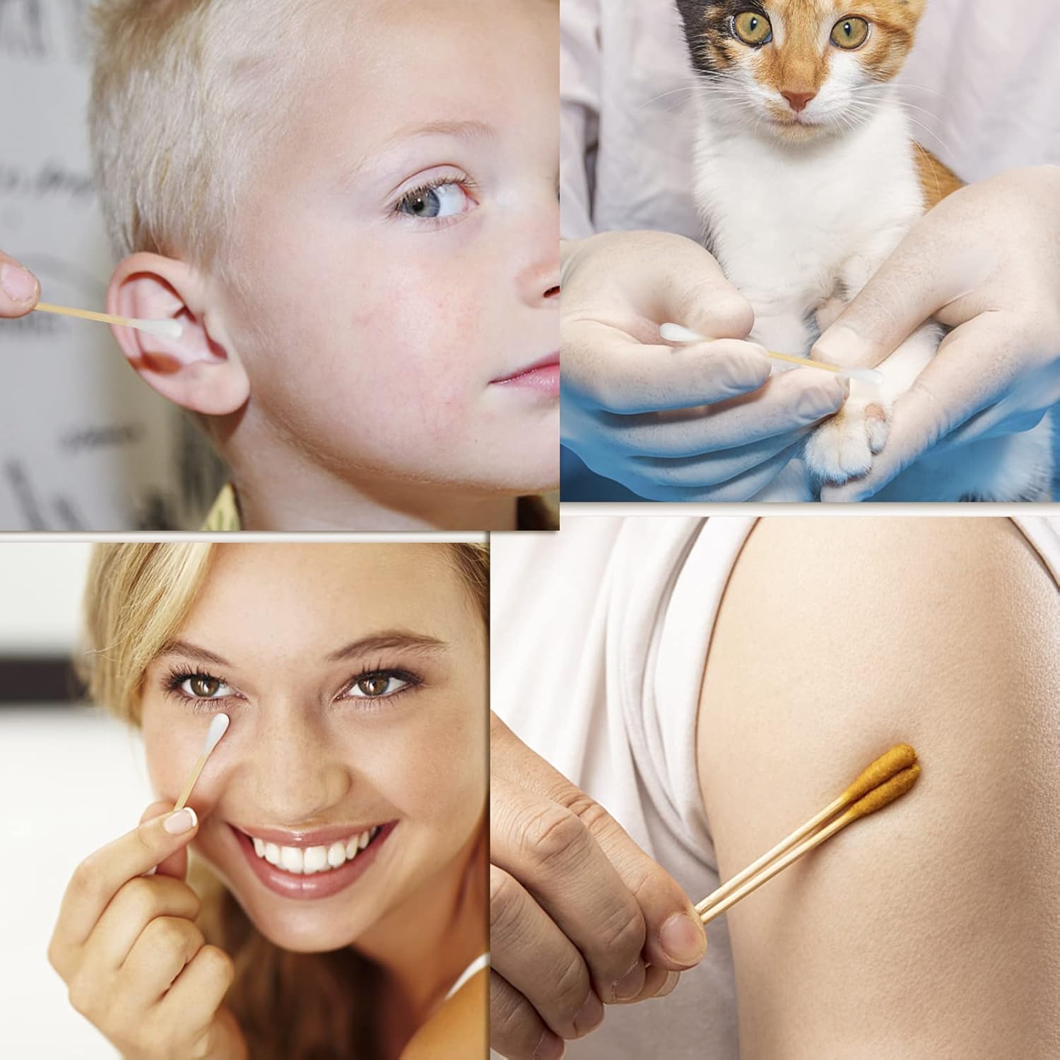 - MULTIPURPOSE COTTON SWABS. FOVURTE cotton swab can be used to remove makeup, cleaning jewelry, ceramics, electronics, fabric decoration, arts and crafts, cats and dogs or other pets. It is great for applying/removing/touching-up makeup.