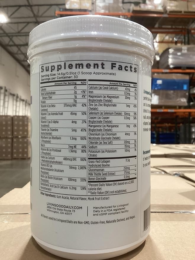 - Easy to Take: Easily mix Livingood Daily Vanilla Collagen + Multi into your morning coffee, smoothies, or other drinks for a convenient, delicious, nutritious boost of protein and other essential nutrients. Simply mix one scoop into 8-12 oz of your beverage of choice 1-2 times per day.