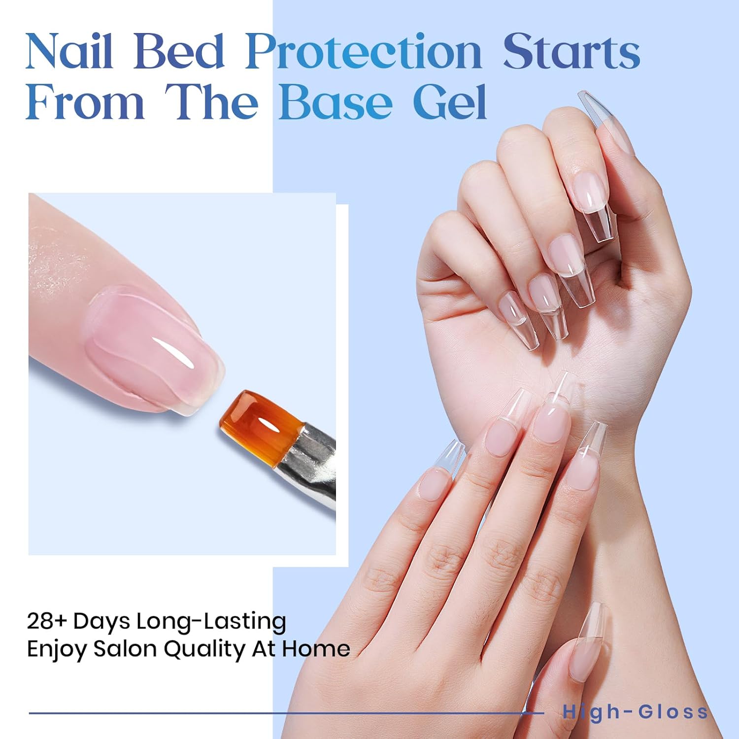 - Lasting for 28+ days: Our Gel Nail Polish Base Coat enhances the adhesion of color gel to nails, ensuring long-lasting results for up to 4 weeks when applied properly. Compatible with ALL BRANDS of Soak-off Gel Nail Polish, this base coat is perfect for natural nails, builder nails, nail tips, artificial nails, acrylic nails, etc