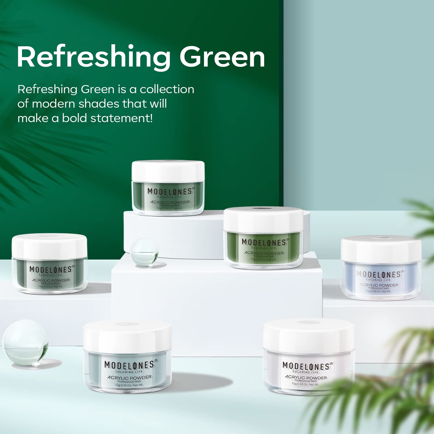 Modelones Acrylic Powder 6 Colors Acrylic Nail Powder Kit Sage Green Mist Blue Light Grey Dark Olive Shades Matcha Avocad 3D Acrylic Nail Art Nail Extension No Nail Lamp Needed (C5-Misty forest)