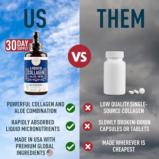 - Un suplemento de colágeno líquido para mujeres y hombres que contiene 750 mg de péptidos de colágeno marino hidrolizado, 125 mg de aloe vera y vitaminas para el cabello, la piel y las uñas.