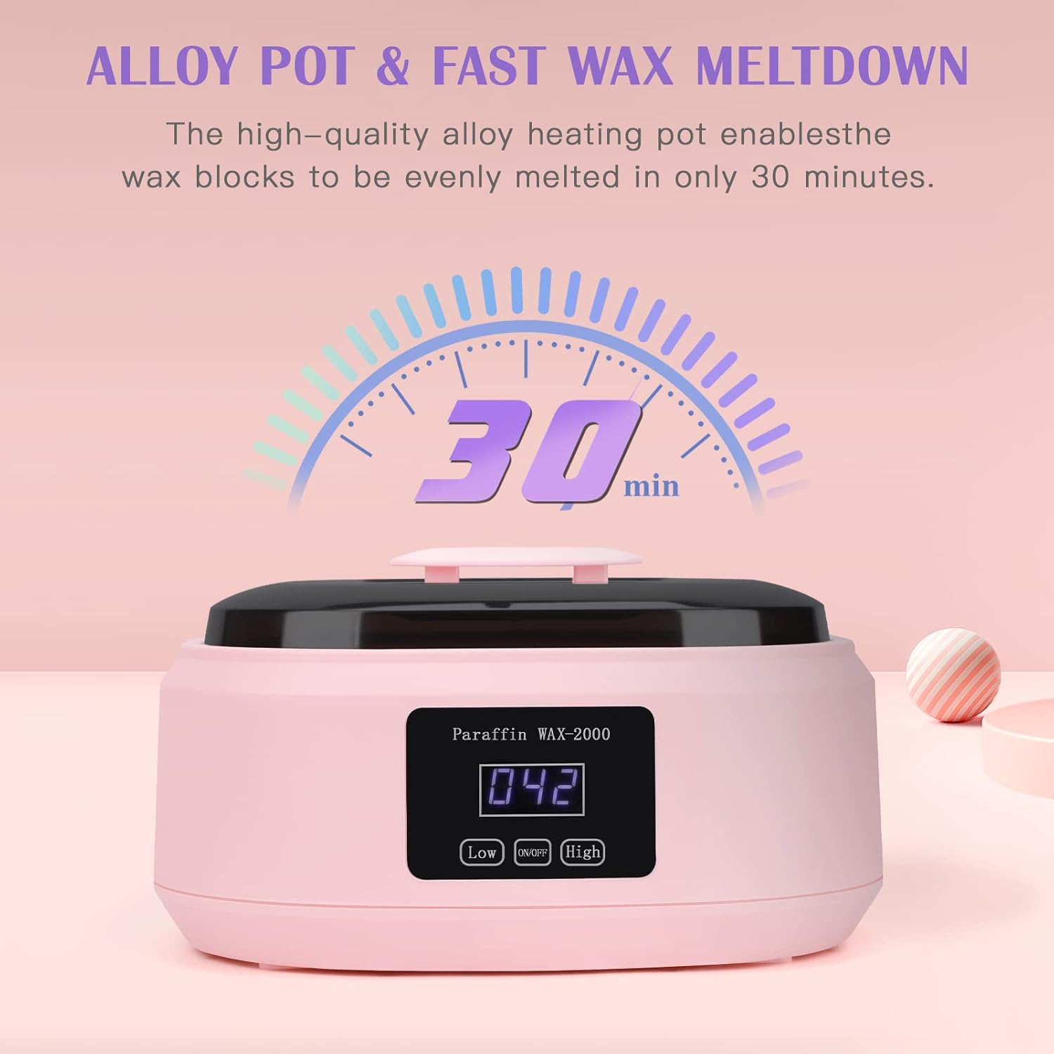 - 【QUICK MELT-DOWN IN 30 MIN】 Using our paraffin wax warmer's specially manufactured alloy heating pot, which has excellent thermal conductivity, the paraffin wax blocks can be quickly and uniformly melted, allowing you to enjoy your hot wax treatment more simply in just 30 minutes.