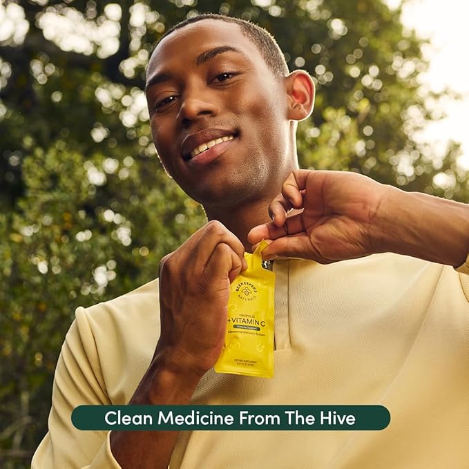 - SUPERCHARGED IMMUNE SUPPORT: Each dose contains 1000mg of Vitamin C and 100mg of Propolis which delivers 300+ beneficial compounds, antioxidants like flavonoids and polyphenols. Known as the bodyguard of the beehive, bees use it to line the walls of their hives to keep the germs out. We use it to support our immune systems, soothe scratchy throats, and combat free radical damage in the body.