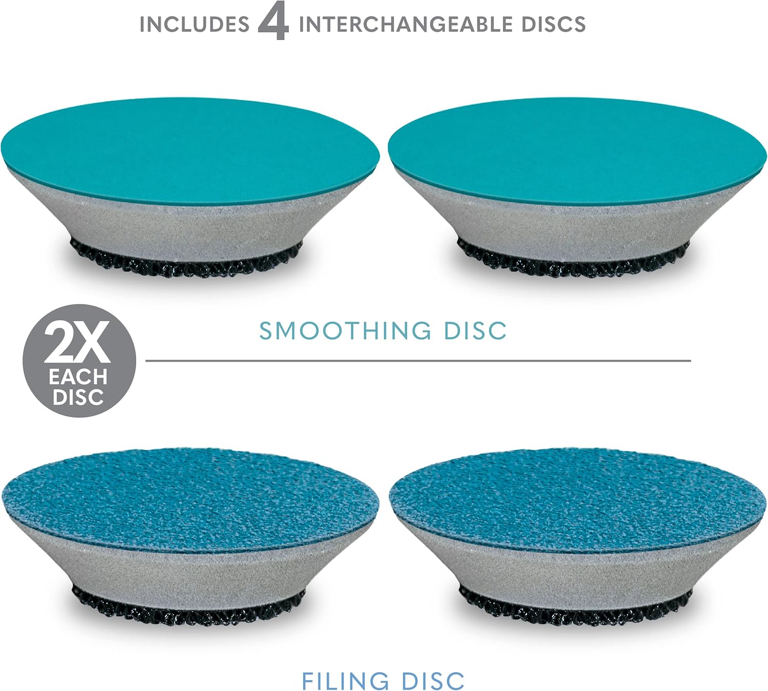 - TWO GROOMING DISCS with rough and smooth grit are mounted on a flexible, foam core to bend to the contours of the foot, allowing for a more comfortable filing experience.