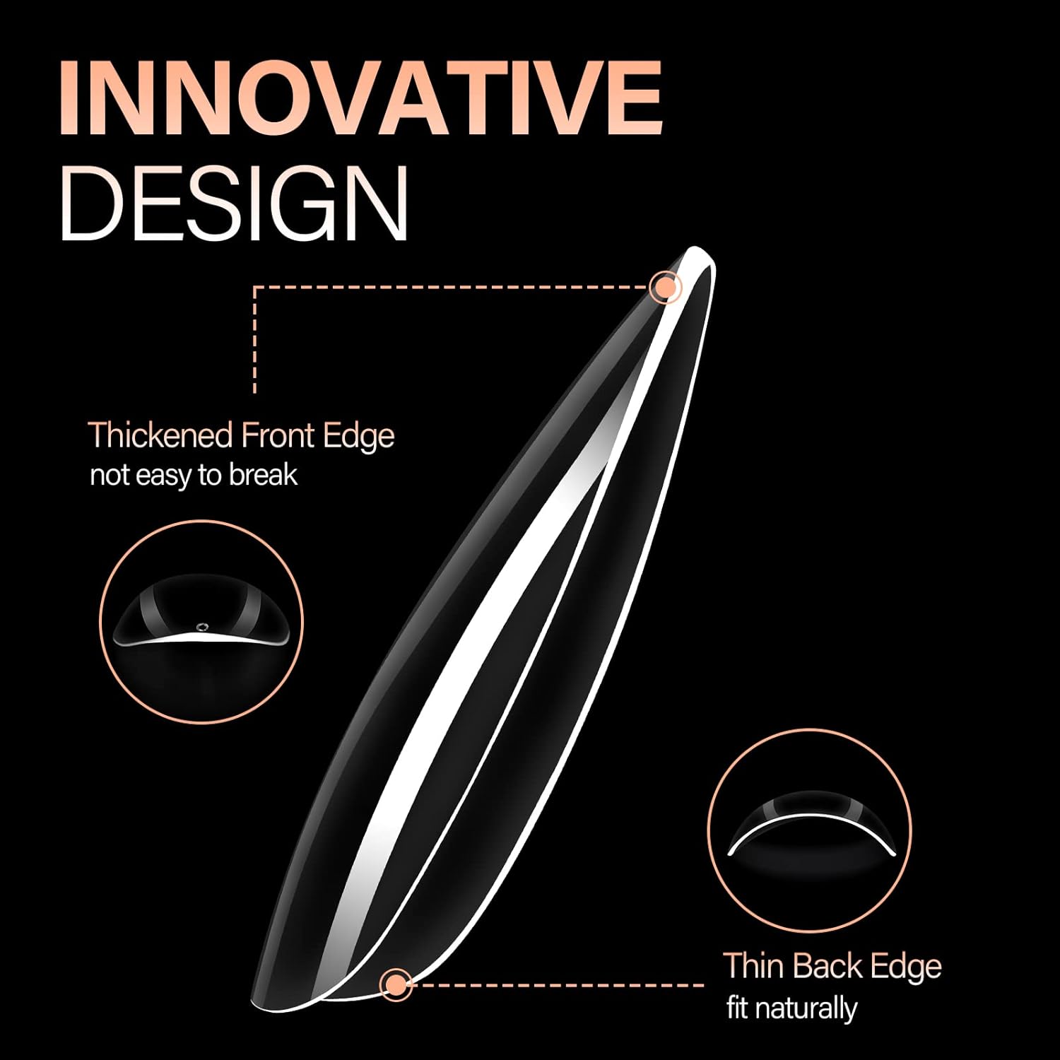 AILLSA Almond Nail Tips 504pcs Clear Nails Tips Gel Full Cover Nails Tip Medium Almond Shaped Fake Soft Nails for Press on Nail Extensions Home DIY Nails Salon- X (12 Sizes)