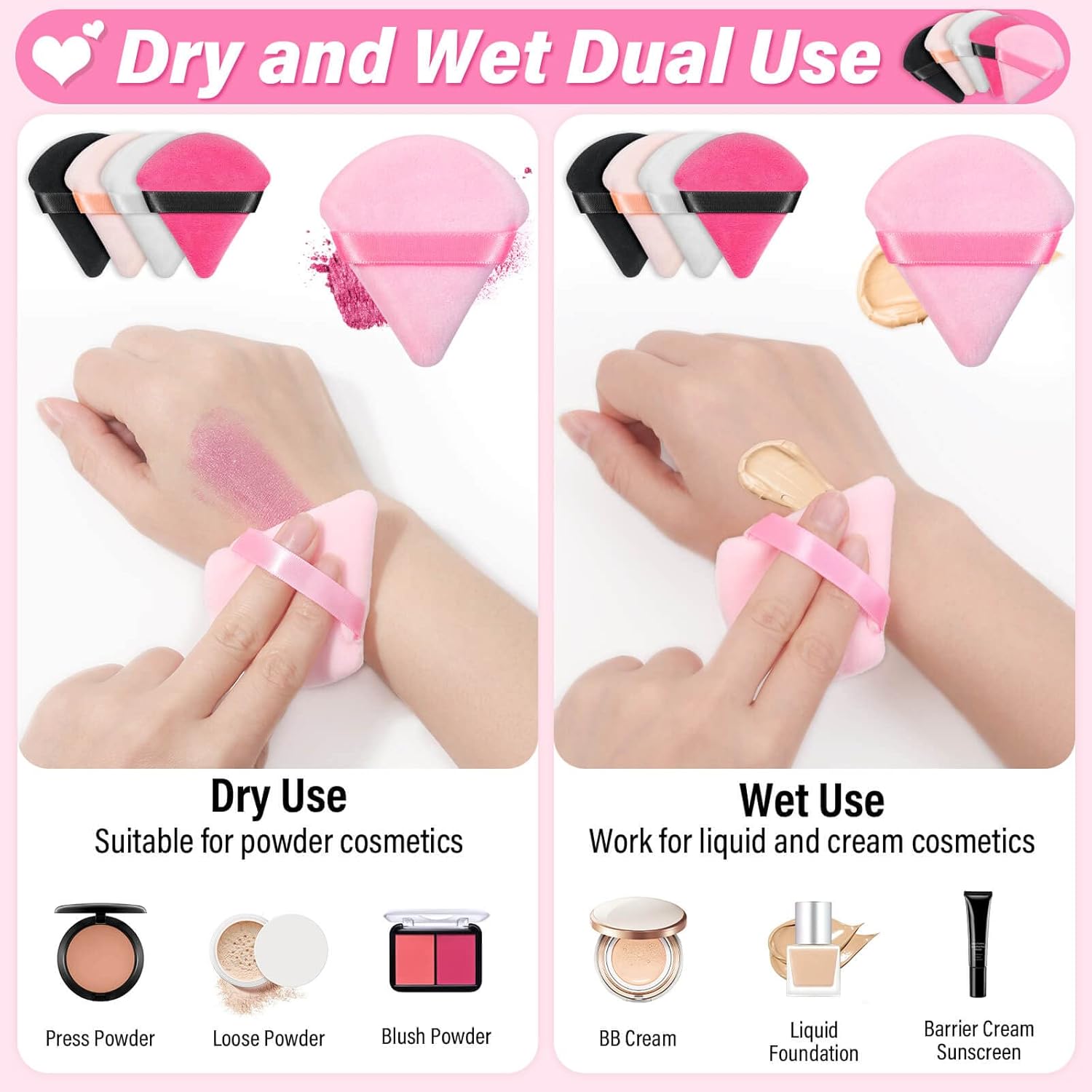 - Practical Design: The face powder sponge is designed with a triangle and circle shape, which is proper to apply powder more evenly and thoroughly in the hard-to-reach corners, makes your makeup process more efficient