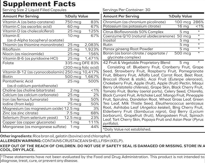 Ultimate Multivitamin Multimineral and Superfood with 42 Fruit and Vegetable Blend, 60 Count