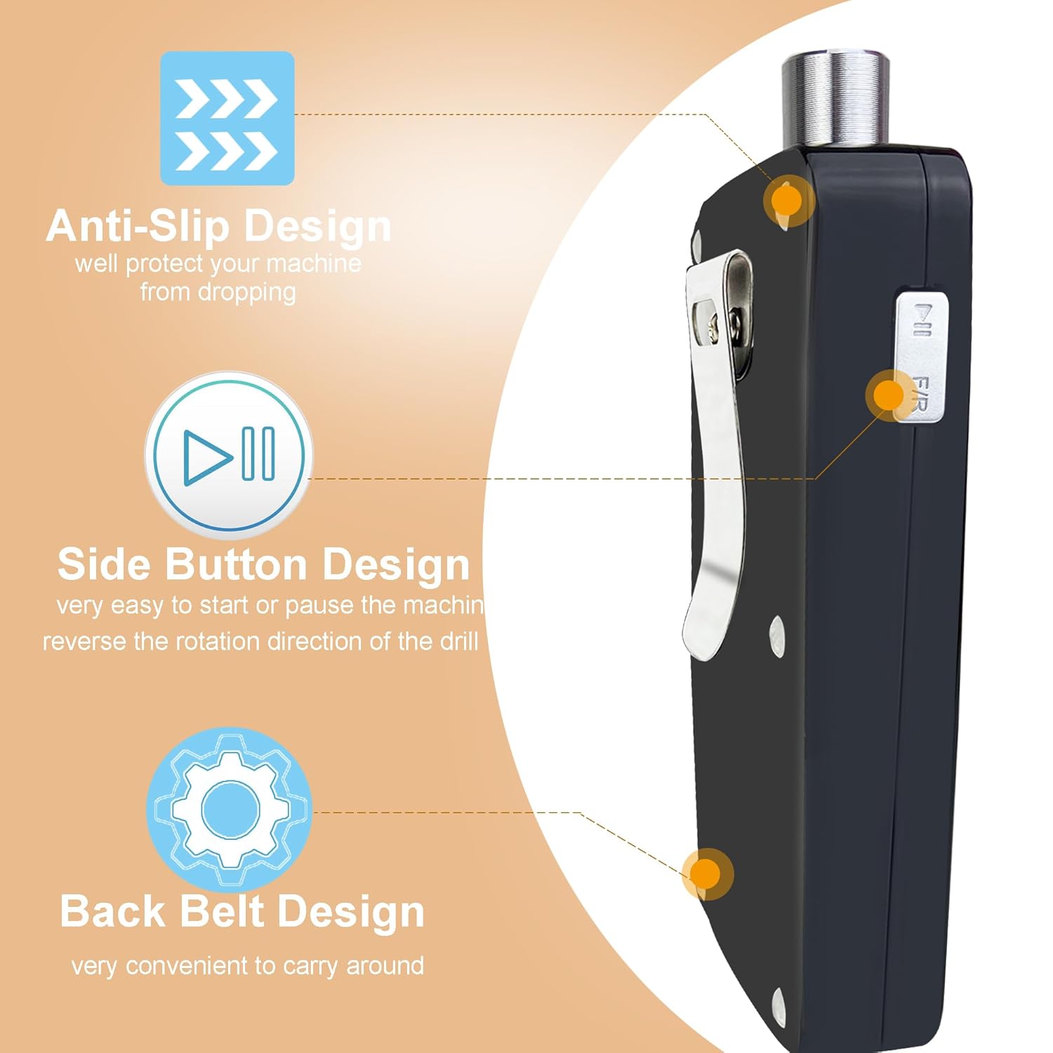 - 【Smart LED Display for Control】 The bright LED screen shows real-time RPM and battery life, so you’ll never guess your speed or run out of juice unexpectedly. Ultra-quiet motor (under 60dB) keeps your workspace peaceful, while overload protection shields the motor—prolonging its life for years of use.