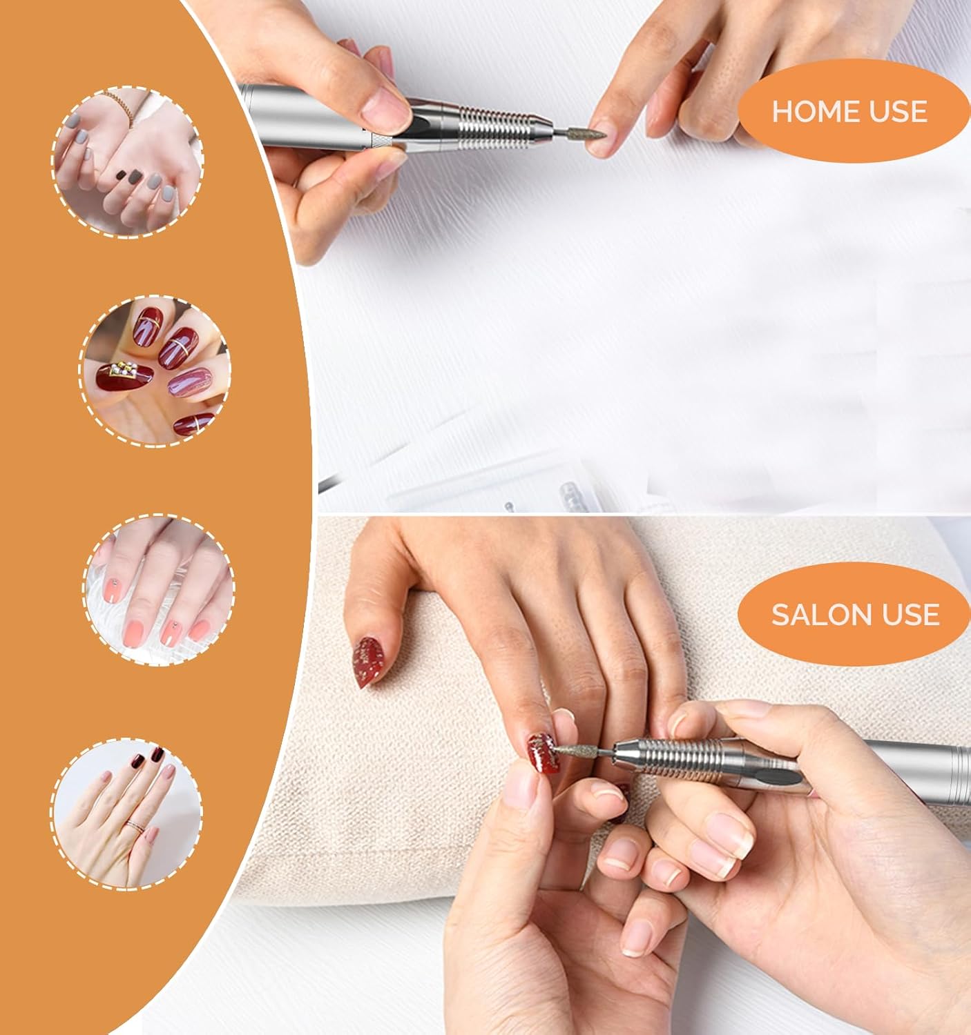 - 【6-in-1 Multi-Use Bits】 This nail drill kit comes with 6 premium carbide bits: ① Acrylic/Gel Remover ② Cuticle Pusher ③ Callus Grinder ④ Nail Shaper ⑤ Polisher ⑥ Pet Nail Groomer (yes, it works for pups too!). From filing natural nails to stripping tough gel, it’s a one-stop tool for DIY enthusiasts and pros.