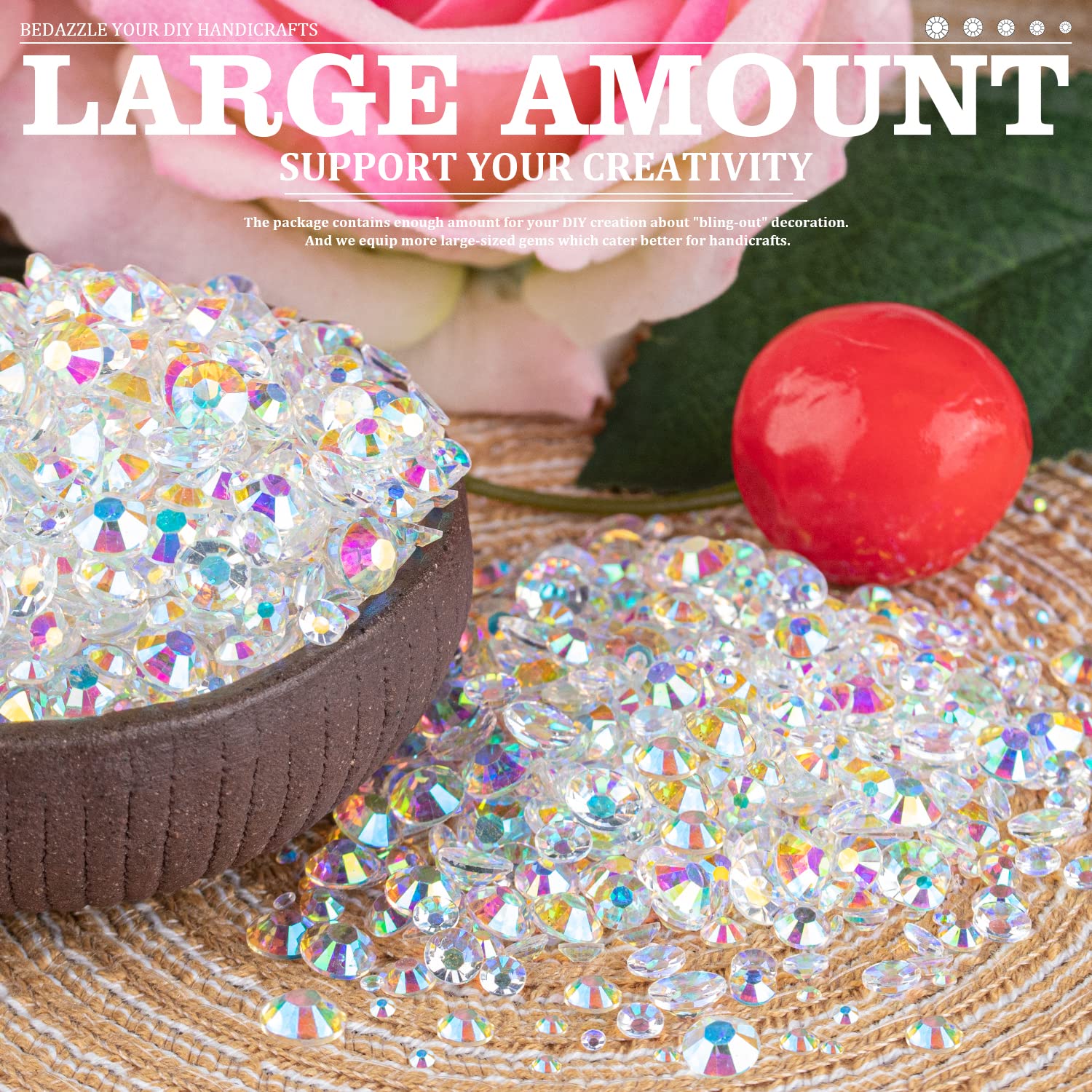 - 💎WIDE APPLICATION -- These sparkling iridescent resin rhinestones are perfect for creating dazzling looks. Use them for face makeup, eye makeup, body art, 3D nail art or bedazzling DIY crafts like shoes, tumblers, mugs, bottles, phone cases, popsockets, scrapbooks, photo frames, diamond paintings, greeting cards, bags, glasses, guitars, keychains, hats, masks, hair clips, bracelets, wristbands, clothing, wedding dresses, and more. Apply it to what you want to bling!