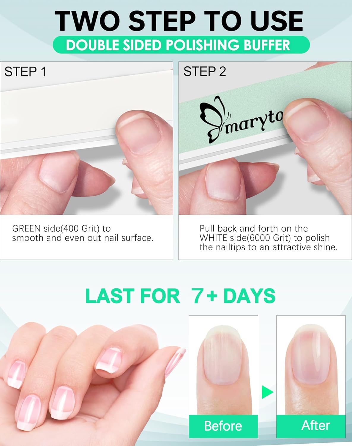 - ESSENTIAL NAIL TOOLS - Maryton Nail buffer kits are designed for use in leading salons and spas around the world. These ultra fine nail file buffers are essential nail tools for nail beginners and professionals, effectively bring clients amazing shiny nails.