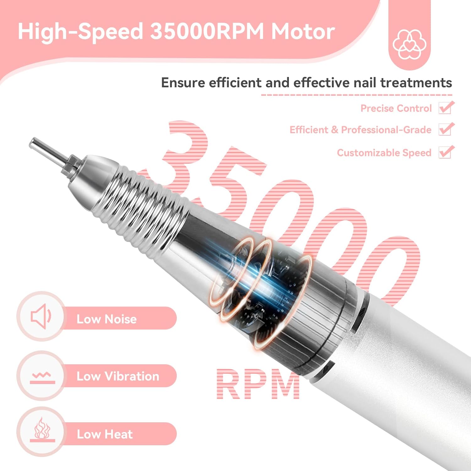 - Professional Electric Nail Drill Machine: Saviland portable electric nail drill set comes with a nail drill machine and a nail drill pen, up to 35000 RMP. The electric nail file has a compact and lightweight design that can be easily carried around, not only for home, but also perfect for travel.