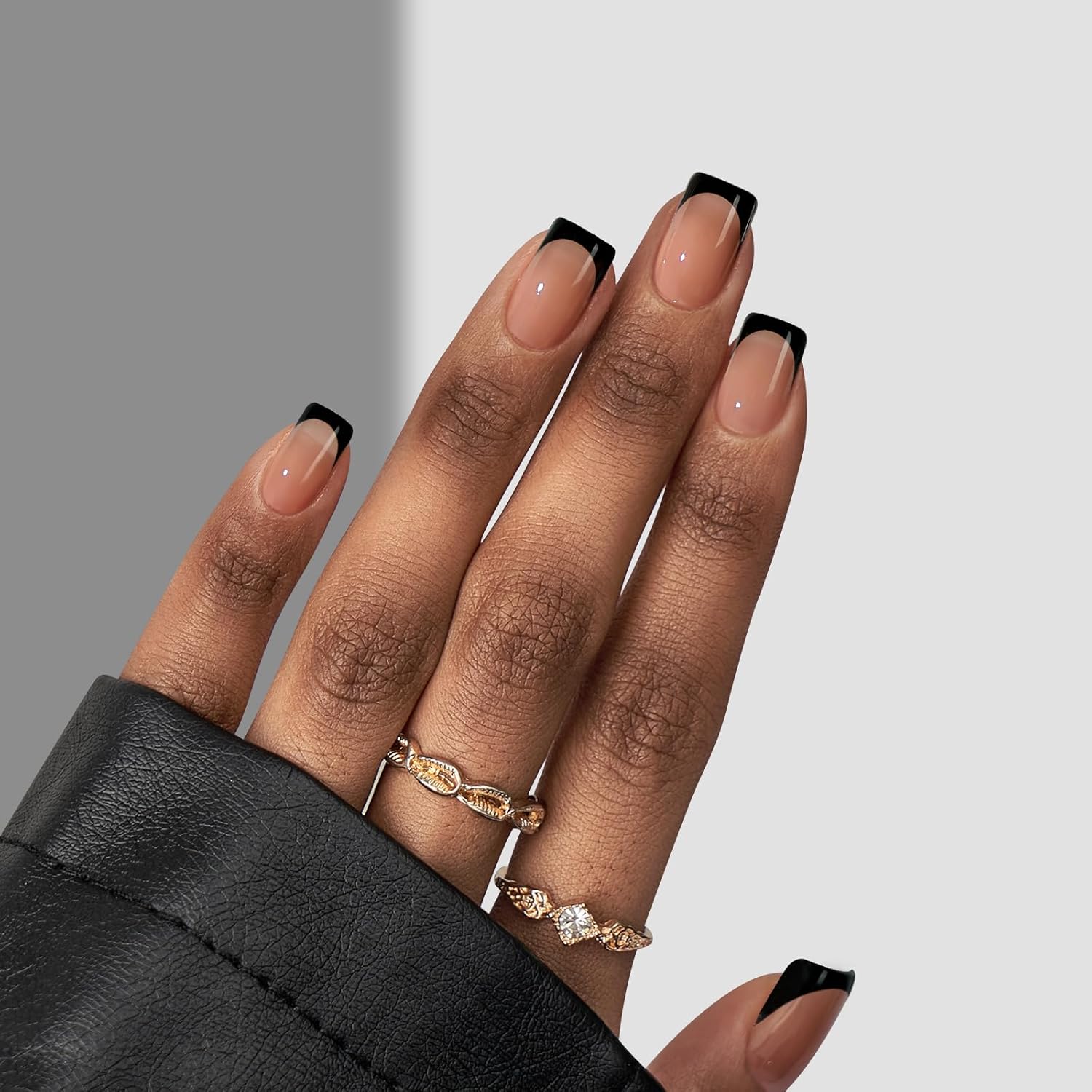 BTArtboxnails Black Press on Nails - French Tip Press on Nails Short, Square Gel Nail Tips, Supremely Fit Natural Fake Nails in 16 Sizes - 160 Pcs False Nails, Black French