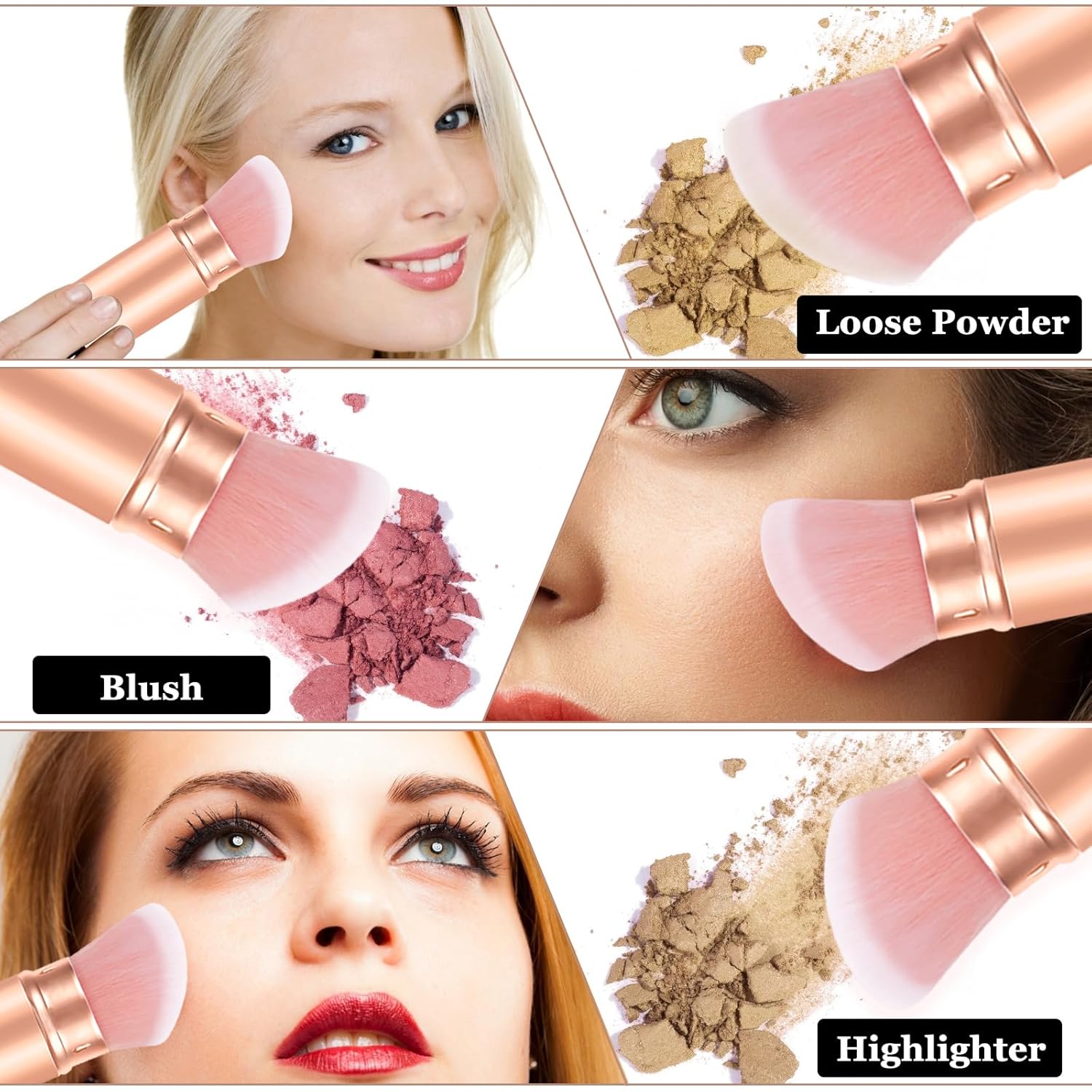 - 【Stylish & Easy to Clean】 The travel powder blush brush comes with recycled aluminum, excellent and more beautiful, increase the longevity of your face brush. Clean regularly with makeup brushes shampoo to lengthen brush health and prevent excessive shedding.