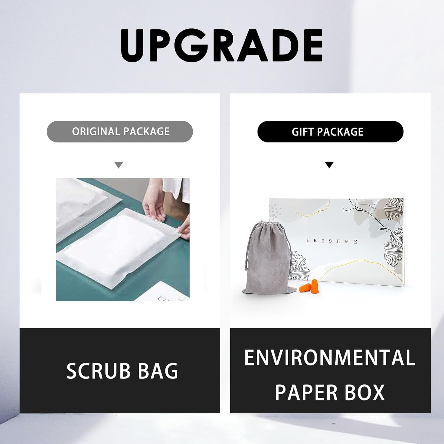 FRESHME Cotton Eye Mask for Sleeping in Gift Box - Soft and Adjustable Extensions Sleep Mask with Earplugs and Pouch for Women and Men, Blackout Cover for Night Travel Relaxation