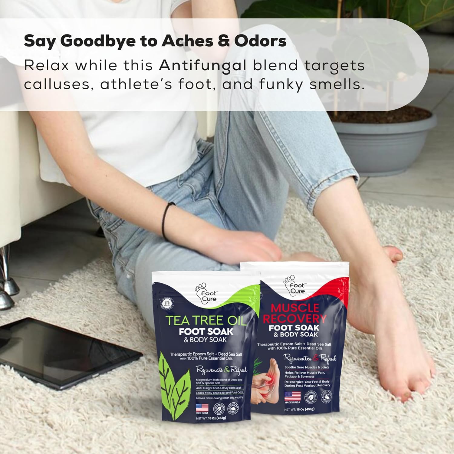 Tea Tree Oil & Muscle Foot Soak with Epsom Salts - All-Natural Salts for Post-Workout Recovery - Softens Calluses, Soothes Sore & Tired Feet, Foot Odor Control, Spa Pedicure, Made in USA, Pack of 2